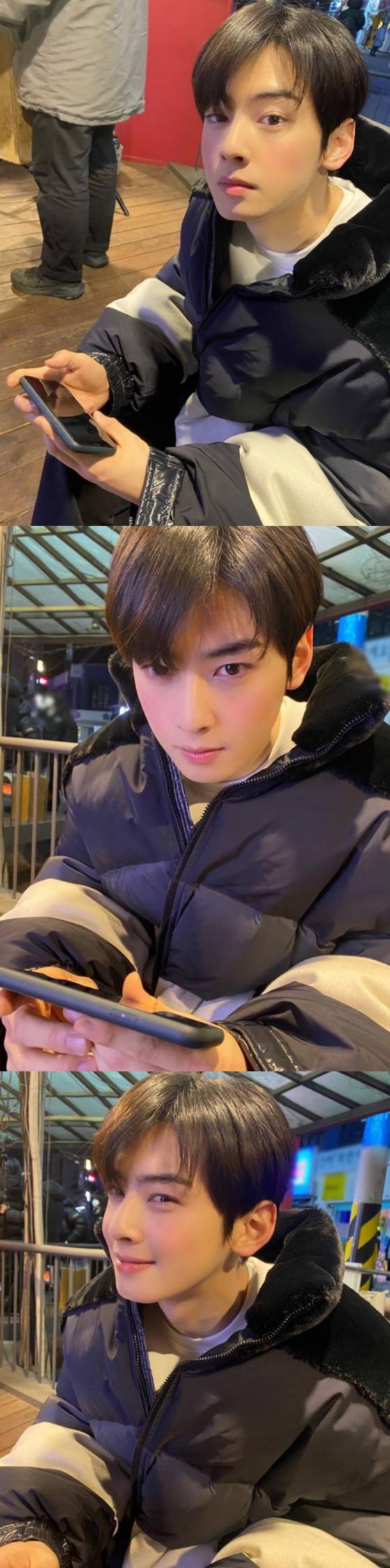 Cha Eun-woo posted a picture on his instagram on the 5th with an article called "Hi" and a tearful emoticon.