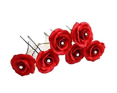 Buy C S Collection Red Rose Flower With Crystal Hair Pin Bun